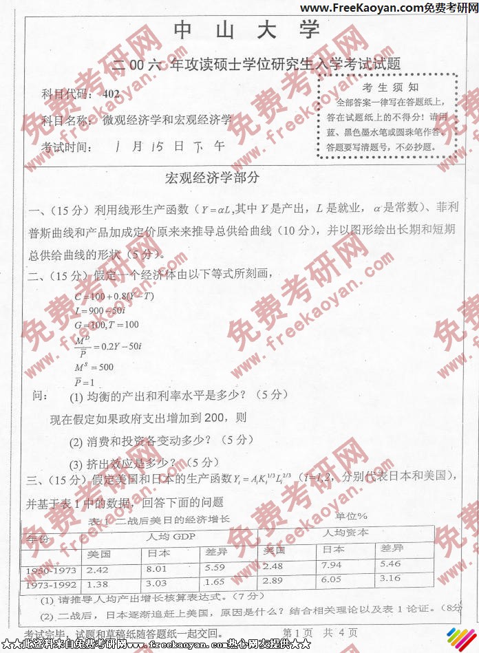 中山大学2006年考研真题-微观经济学与宏观经济学