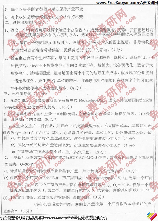 专业课考研经验 本站小编 FreeKaoyan 2018-01-22中山大学2006年考研真题-微观经济学与管理学原理