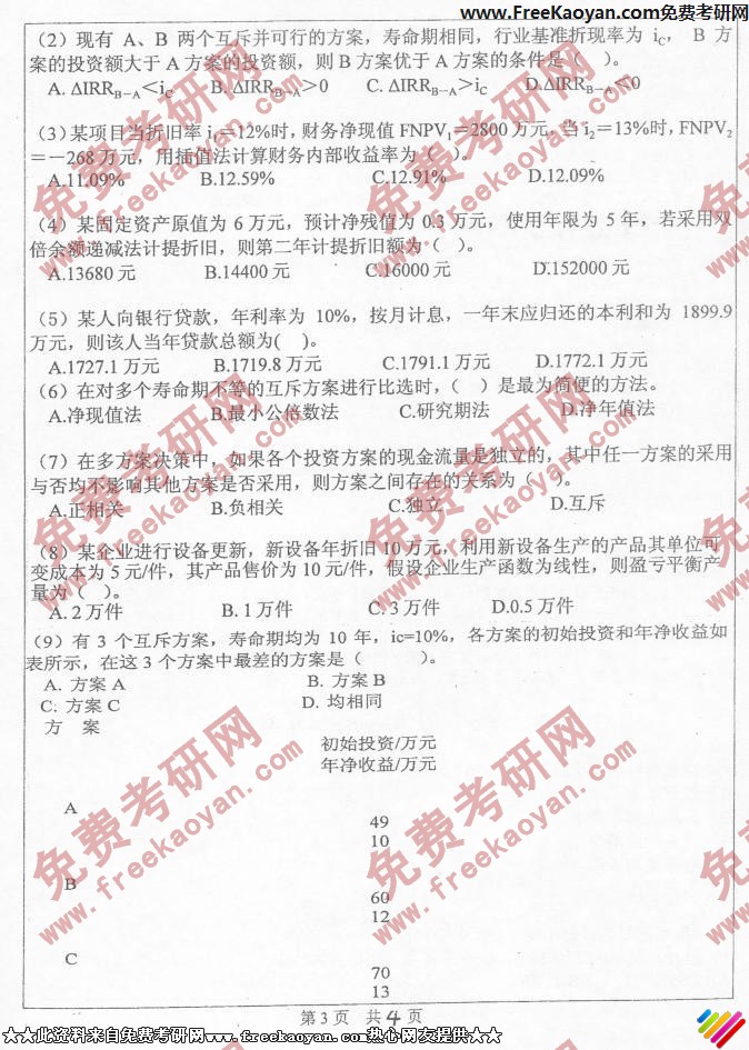 专业课考研经验 本站小编 FreeKaoyan 2018-01-22中山大学2006年考研真题-微观经济学与财务管理