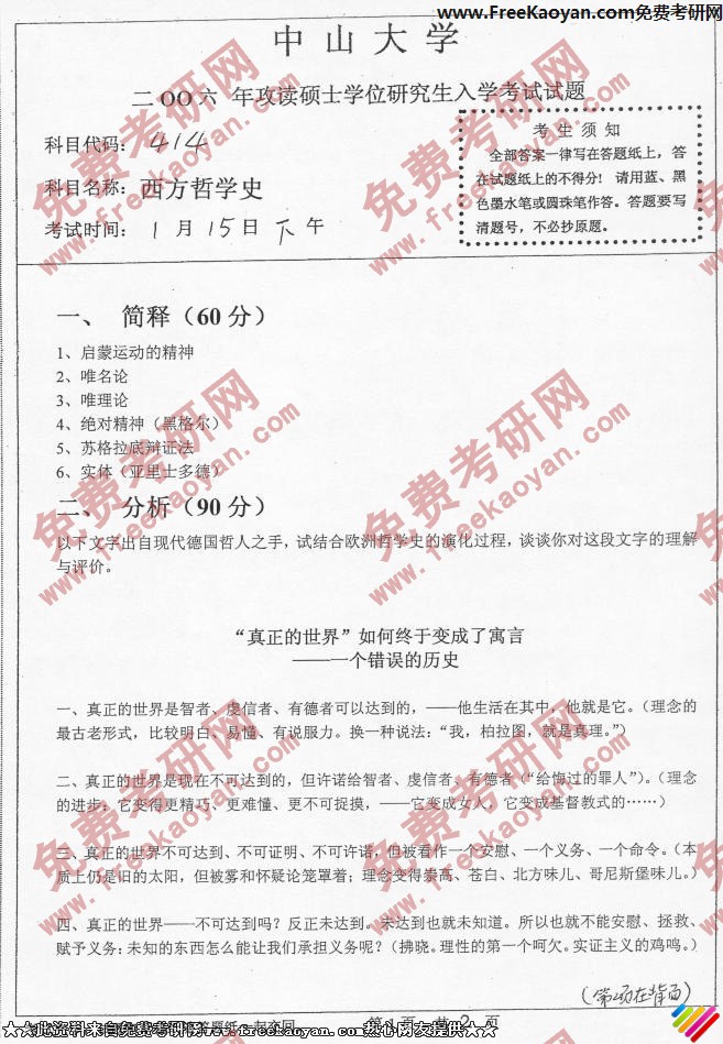 专业课考研经验 本站小编 FreeKaoyan 2018-01-22中山大学2006年考研真题-文献释读