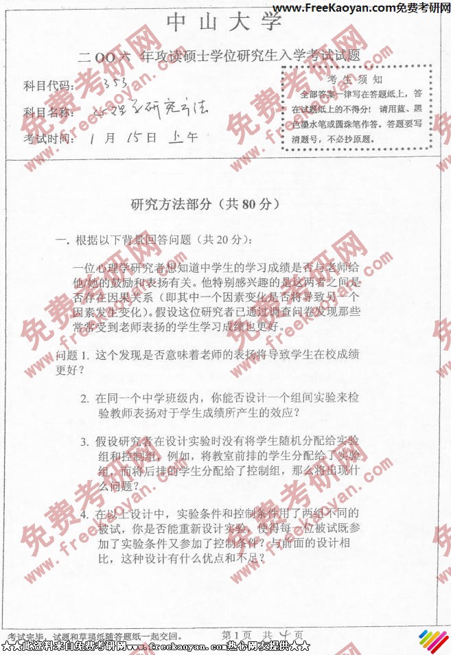 专业课考研经验 本站小编 FreeKaoyan 2018-01-22中山大学2006年考研真题-文献释读