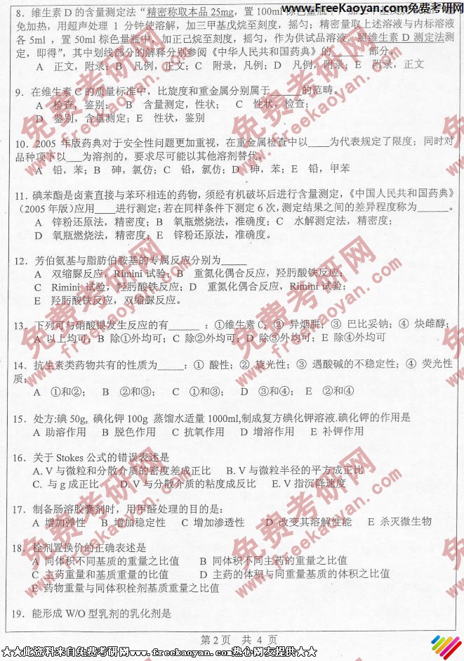 专业课考研经验 本站小编 FreeKaoyan 2018-01-22中山大学2006年考研真题-卫生综合