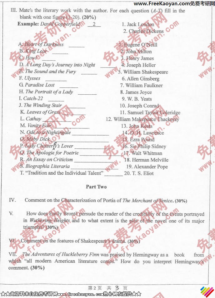 中山大学2006年考研真题-英美文学史(2)