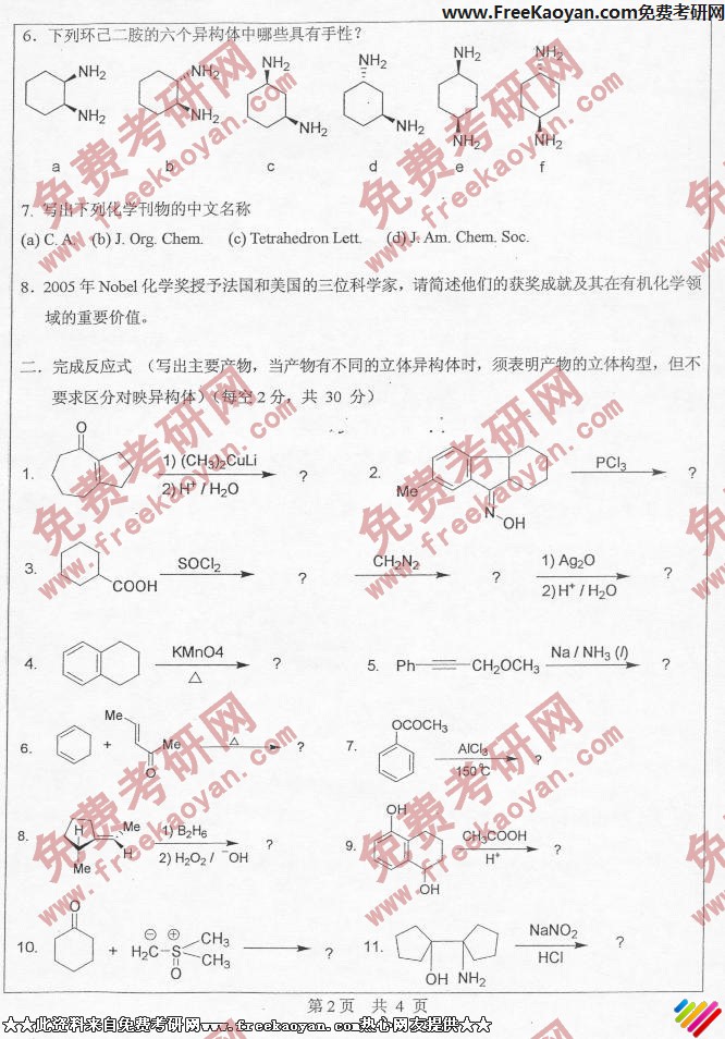 专业课考研经验 本站小编 FreeKaoyan 2018-01-22中山大学2006年考研真题-药学综合