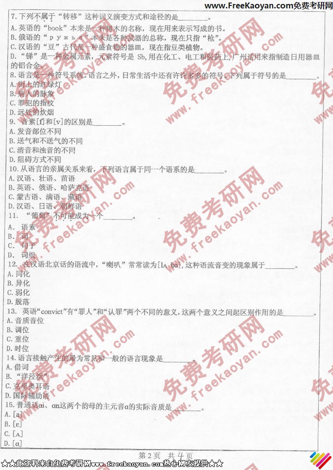 专业课考研经验 本站小编 FreeKaoyan 2018-01-22中山大学2006年考研真题-语言学概论