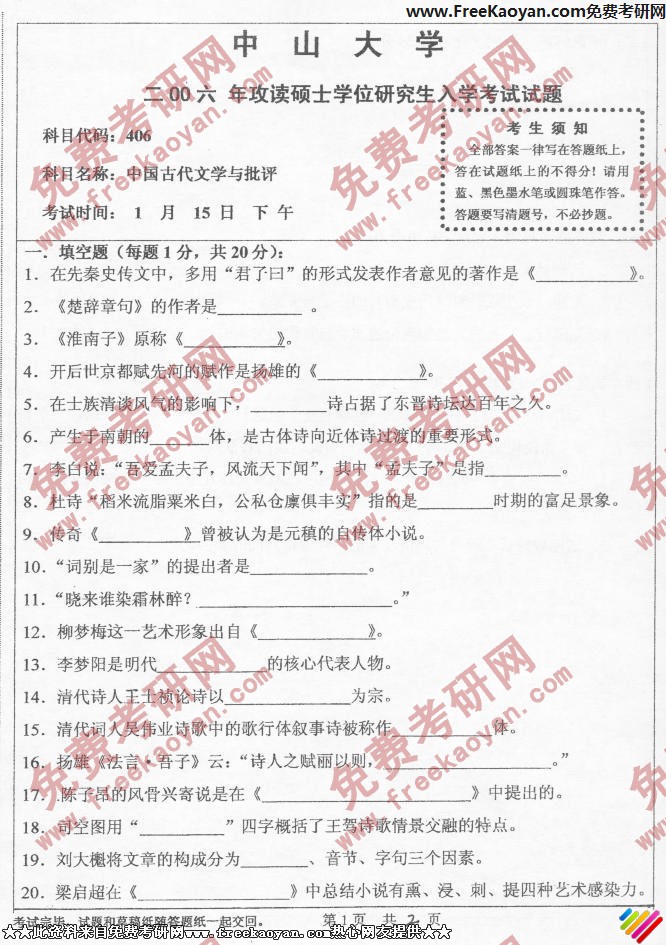 相关话题/考研真题 中国古代文学 中山大学 批评