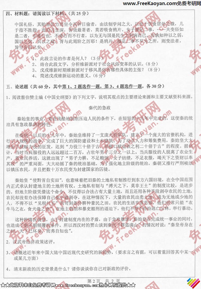 专业课考研经验 本站小编 FreeKaoyan 2018-01-22中山大学2006年考研真题-中国古代史