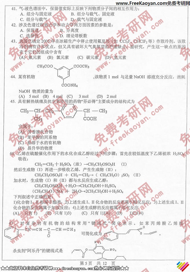 专业课考研经验 本站小编 FreeKaoyan 2018-01-22中山大学2006年考研真题-有机化学基础365