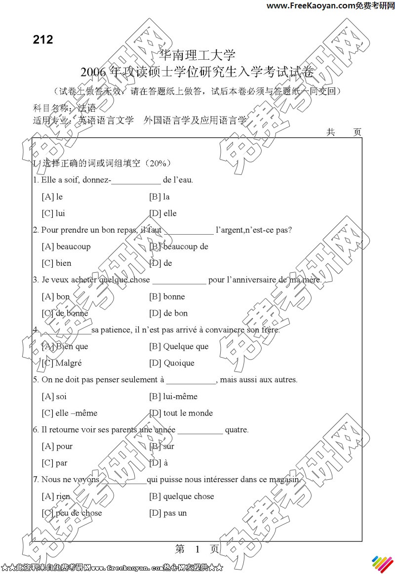 专业课考研经验 本站小编 FreeKaoyan 2018-01-22华南理工大学2006年考研真题-日语