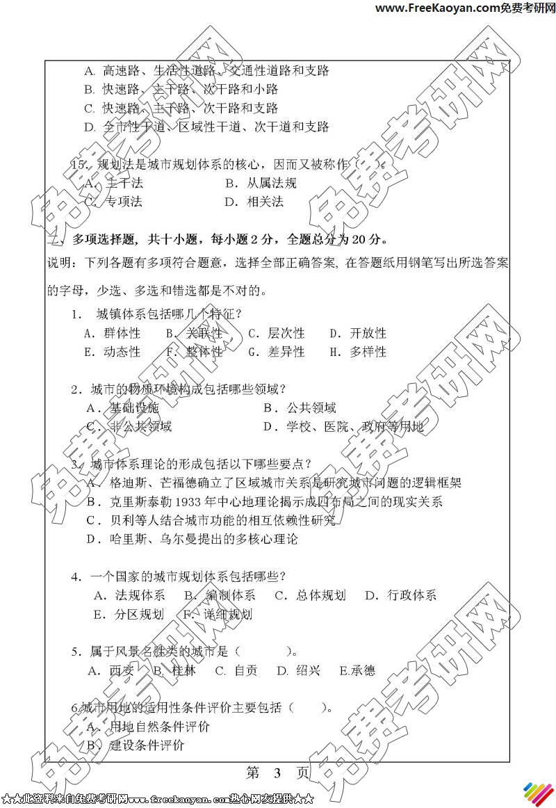华南理工大学2006年考研真题-323城市规划原理(3)
