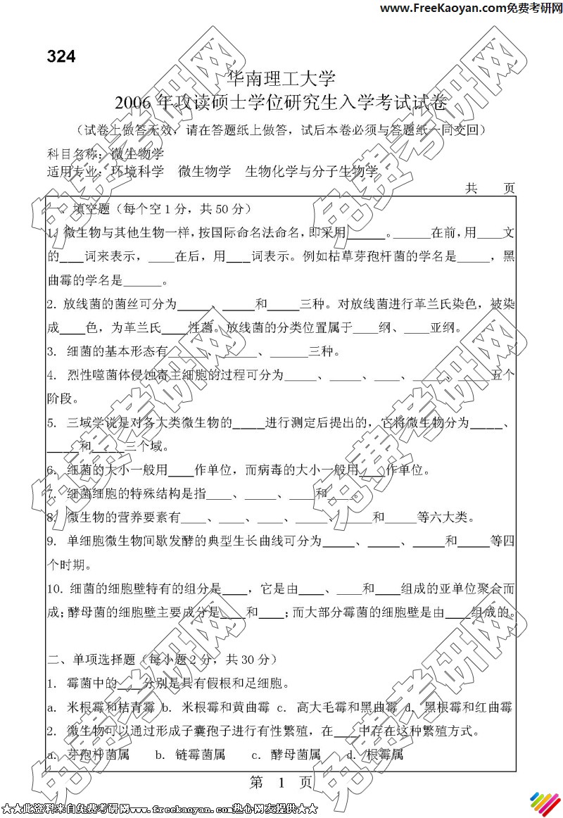 专业课考研经验 本站小编 FreeKaoyan 2018-01-22中山大学2006年考研真题-综合化学