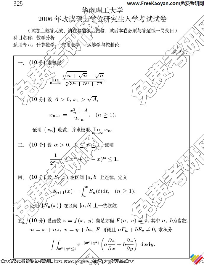 专业课考研经验 本站小编 FreeKaoyan 2018-01-22华南理工大学2006年考研真题-德语