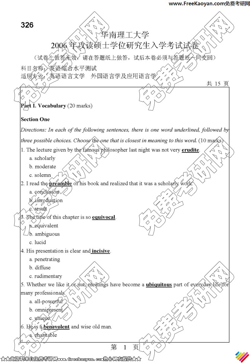 相关话题/考研真题 华南理工大学 英语综合 测试 水平