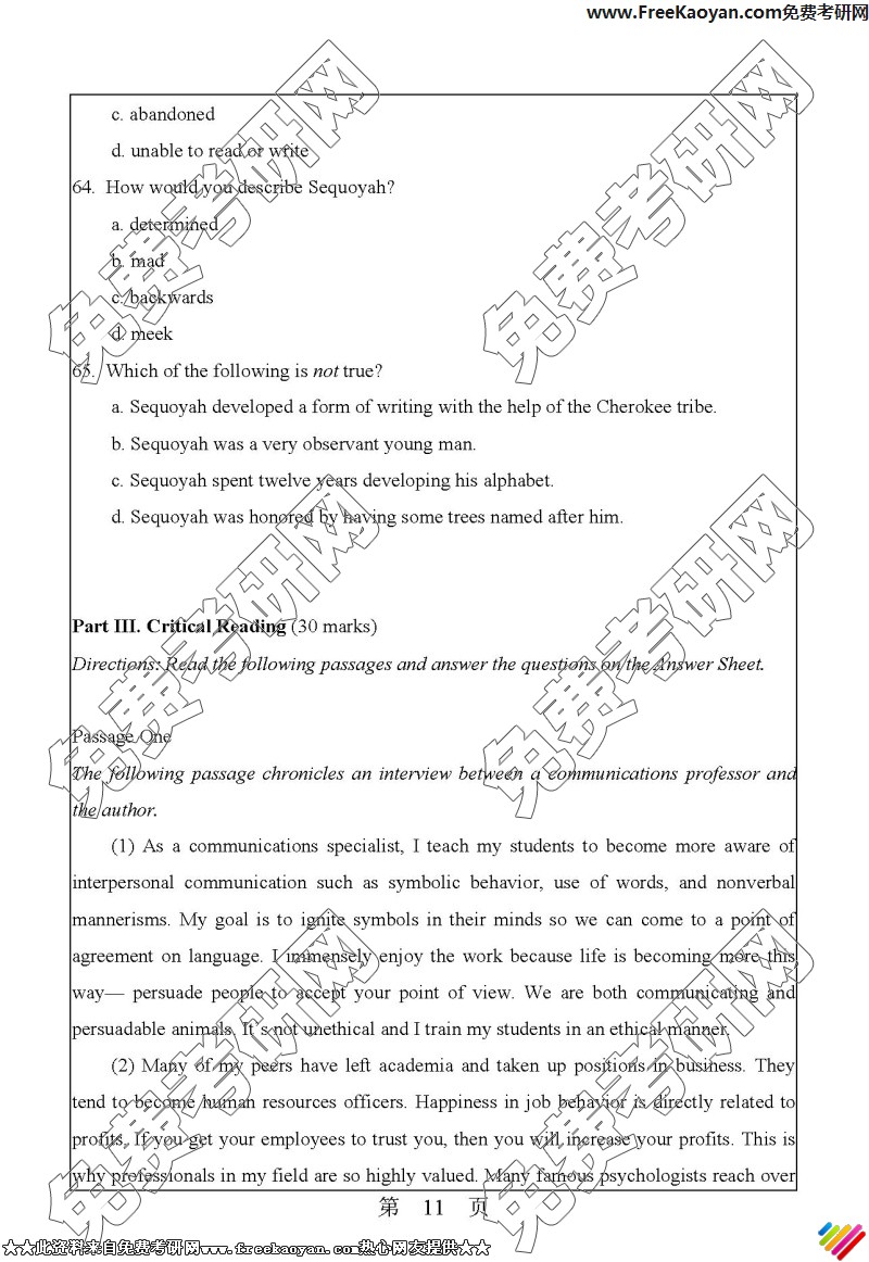 华南理工大学2006年考研真题-英语综合水平测试(11)