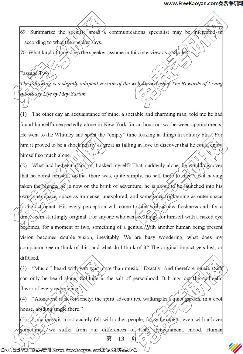 华南理工大学2006年考研真题-英语综合水平测试(13)