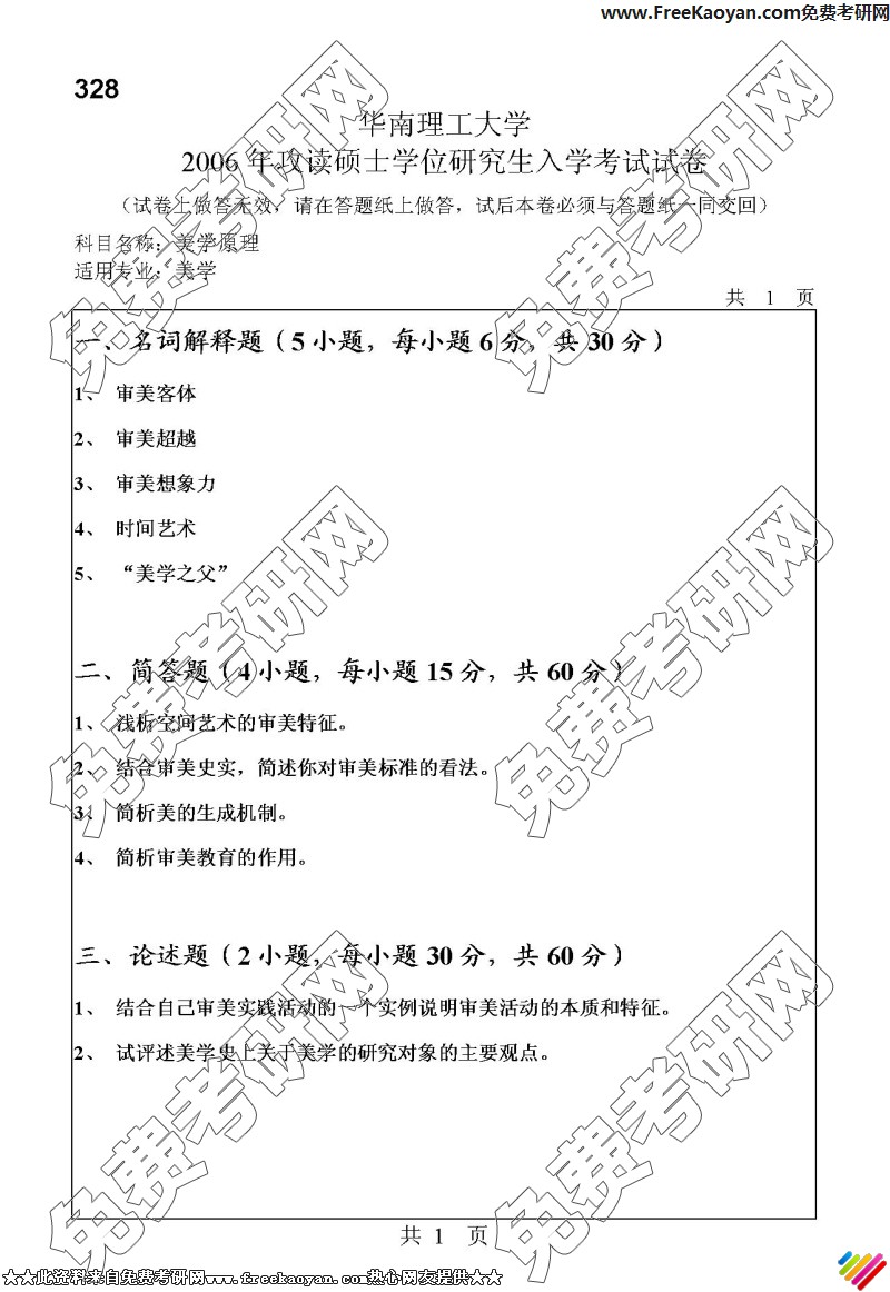 专业课考研经验 本站小编 FreeKaoyan 2018-01-22中山大学2006年考研真题-中西美学史