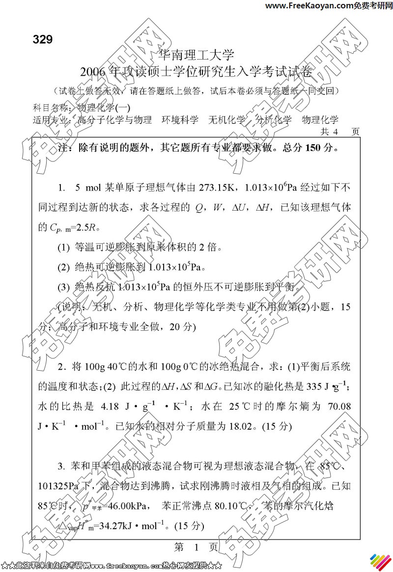 专业课考研经验 本站小编 FreeKaoyan 2018-01-22中山大学2006年考研真题-综合化学