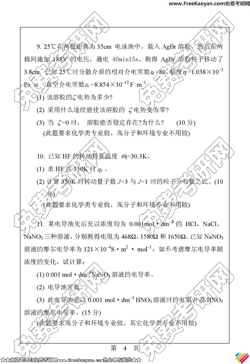 专业课考研经验 本站小编 FreeKaoyan 2018-01-22中山大学2006年考研真题-综合化学