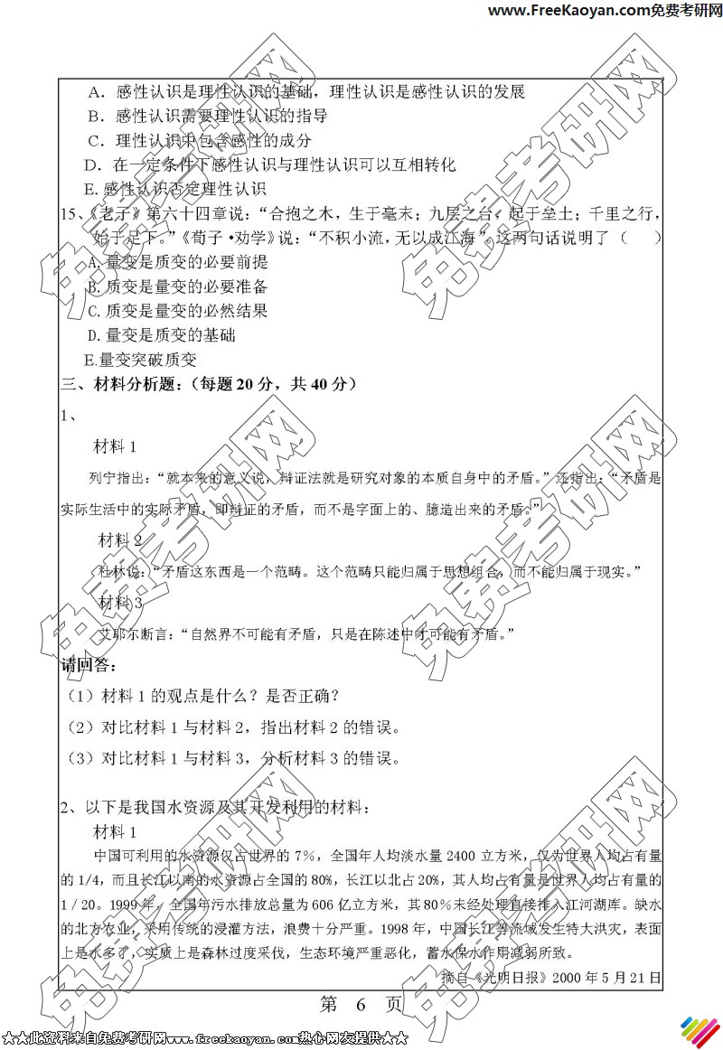 华南理工大学2006年考研真题-辩证唯物主义与历史唯物主义(6)