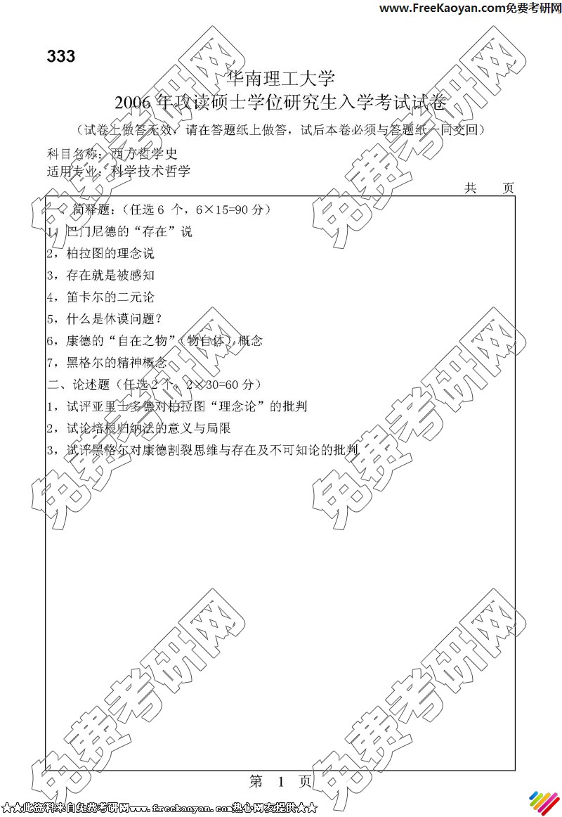专业课考研经验 本站小编 FreeKaoyan 2018-01-22华南理工大学2006年考研真题-辩证唯物主义与历史唯物主义