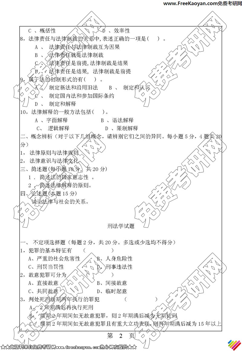 华南理工大学2006年考研真题-法学基础一(法理学、刑法学)(2)