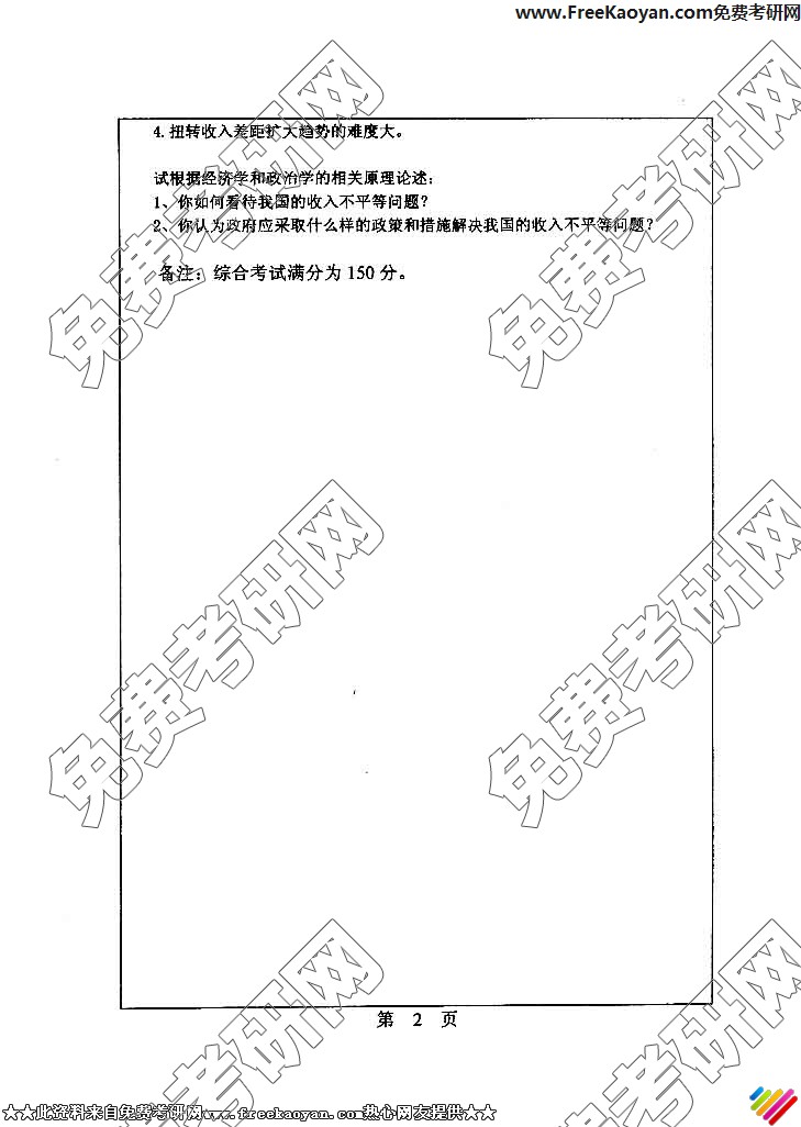 华南理工大学2006年考研真题-综合考试(含政治学、经济学)(2)