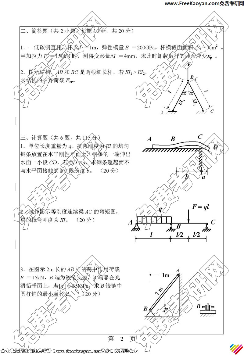 专业课考研经验 本站小编 FreeKaoyan 2018-01-22华南理工大学2006年考研真题-物理化学(一)