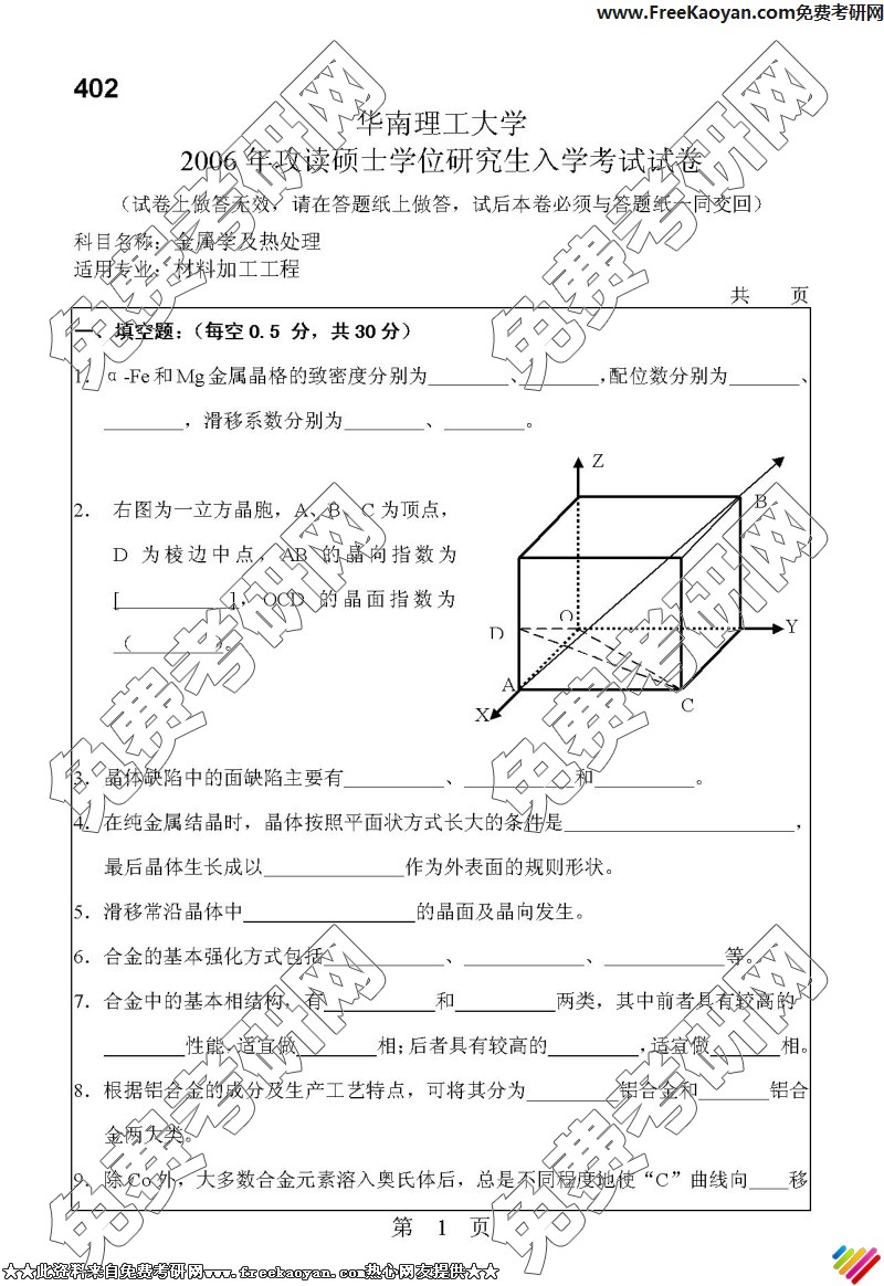 专业课考研经验 本站小编 FreeKaoyan 2018-01-22华南理工大学2006年考研真题-材料力学