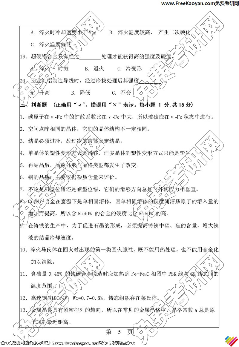华南理工大学2006年考研真题-金属学及热处理(5)