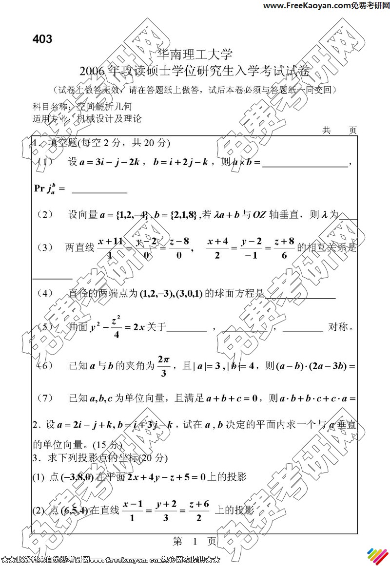 相关话题/考研真题 空间 华南理工大学 解析几何
