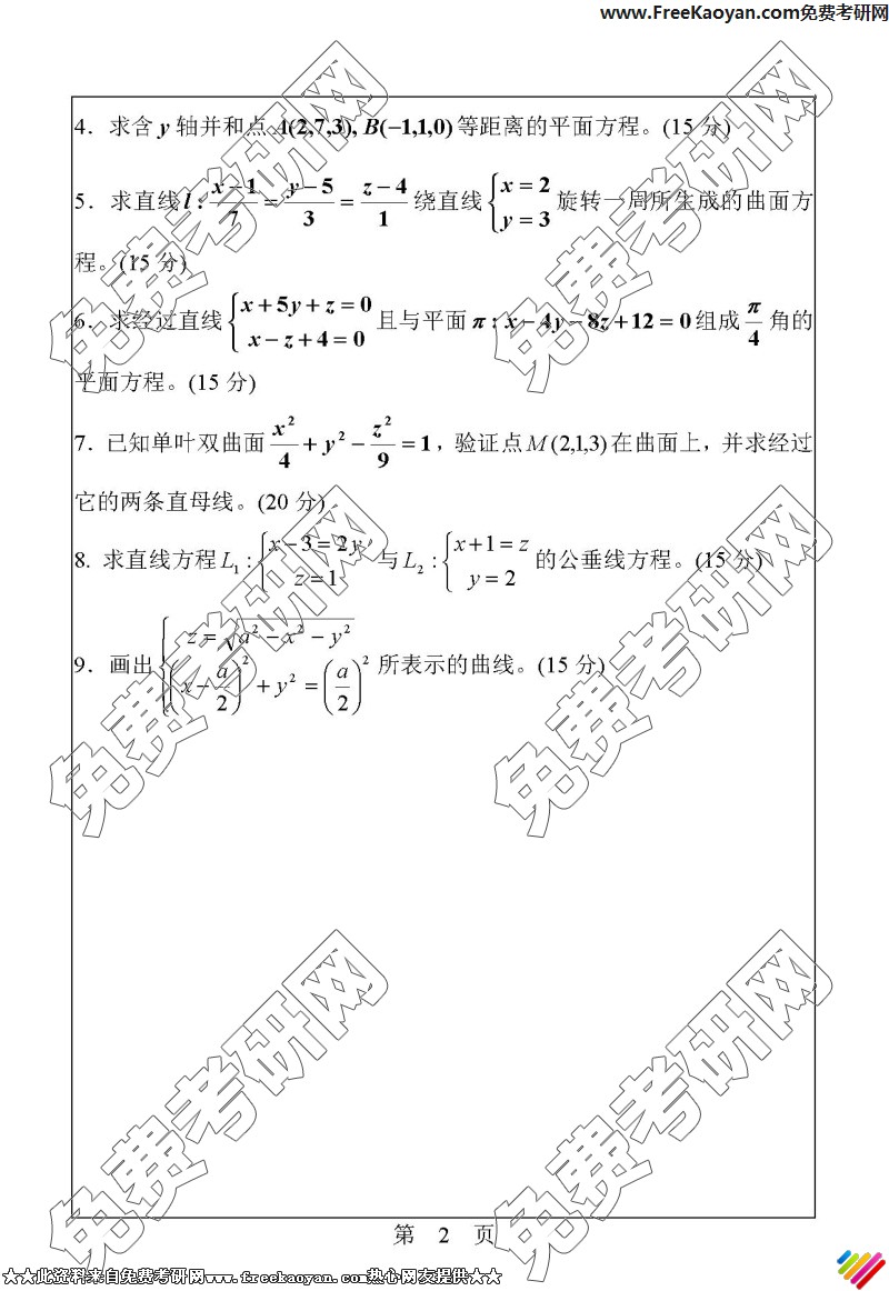 相关话题/考研真题 空间 华南理工大学 解析几何
