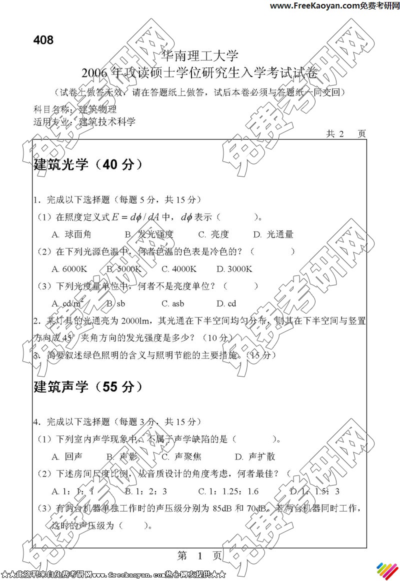 专业课考研经验 本站小编 FreeKaoyan 2018-01-22华南理工大学2006年考研真题-综合考试(含政治学、经济学)