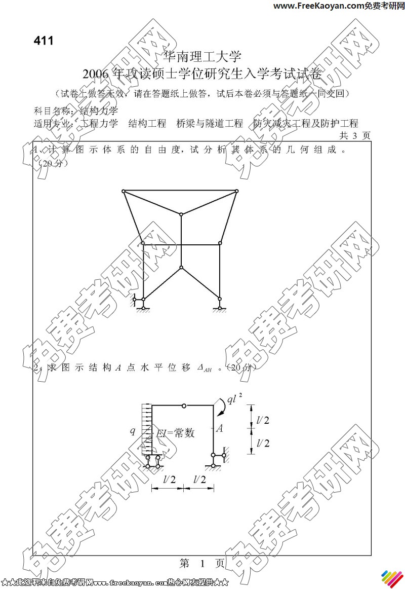 华南理工大学2006年考研真题-结构力学