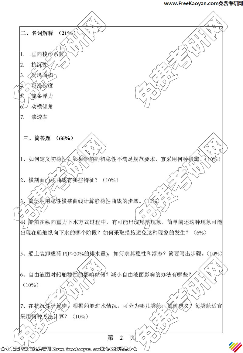 相关话题/考研真题 船舶 华南理工大学 静力学