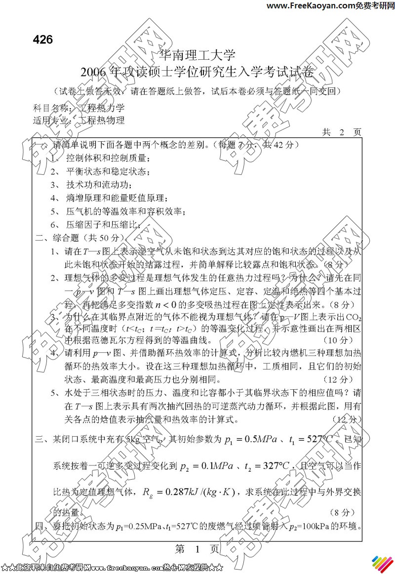 专业课考研经验 本站小编 FreeKaoyan 2018-01-22华南理工大学2006年考研真题-传热学