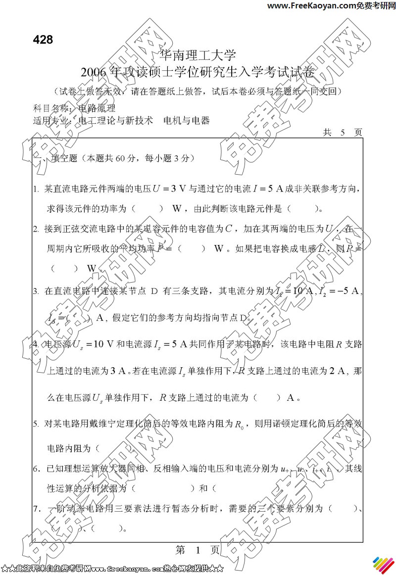 专业课考研经验 本站小编 FreeKaoyan 2018-01-22华南理工大学2006年考研真题-信号与系统