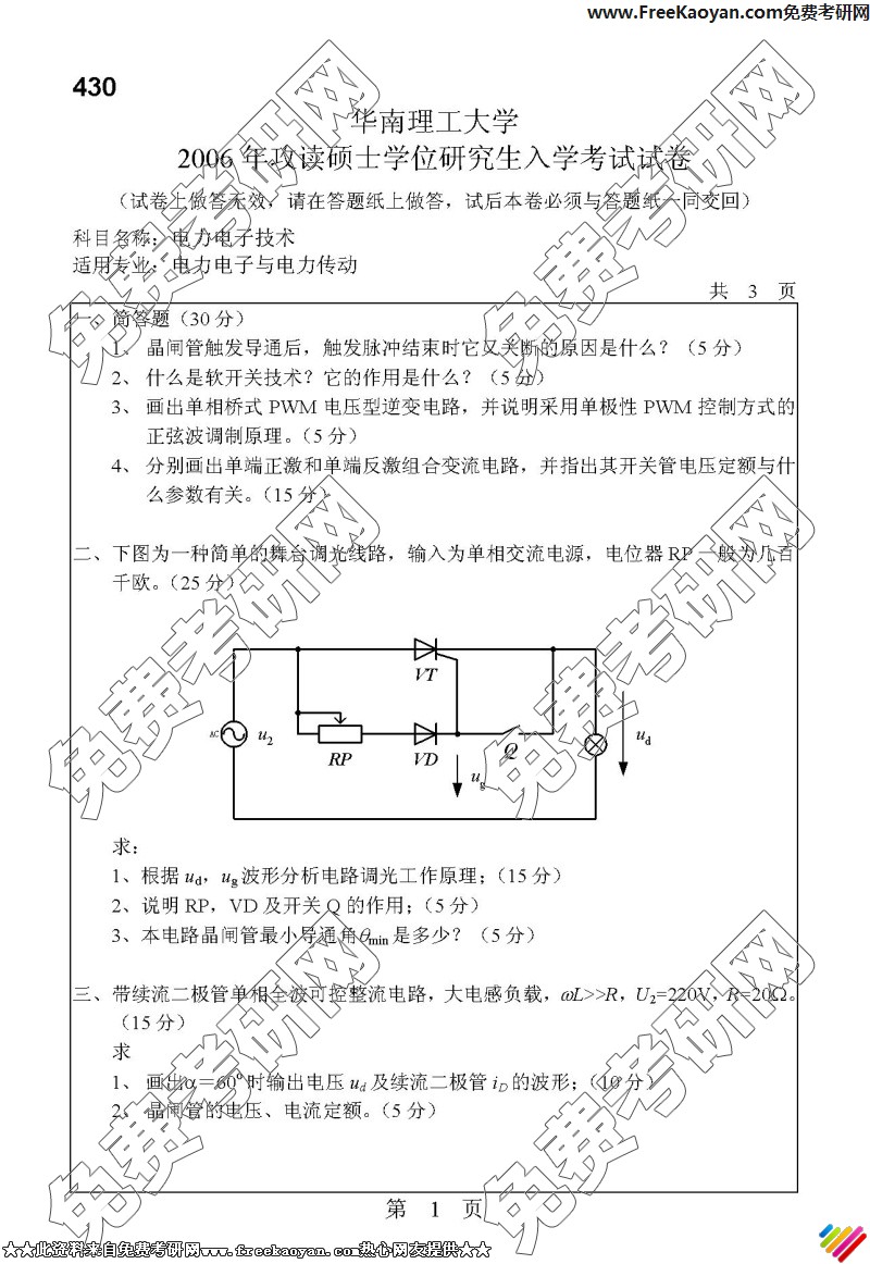 华南理工大学2006年考研真题-电力电子技术