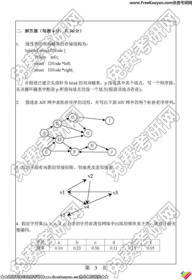 华南理工大学2006年考研真题-计算机专业综合(数据结构、操作系统)(3)