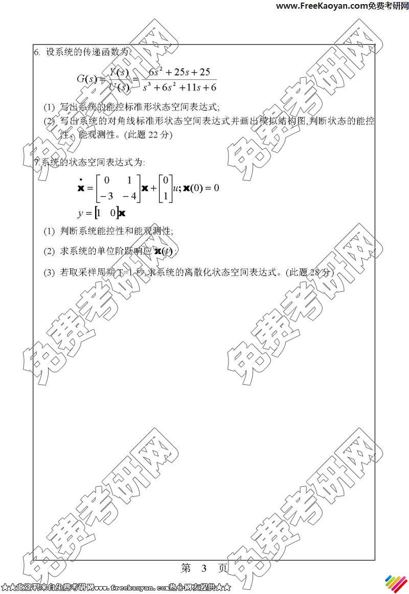 华南理工大学2006年考研真题-自控基础综合(含自动控制原理、现代控制理论)(3)