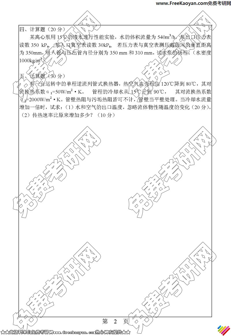专业课考研经验 本站小编 FreeKaoyan 2018-01-22华南理工大学2006年考研真题-传热学