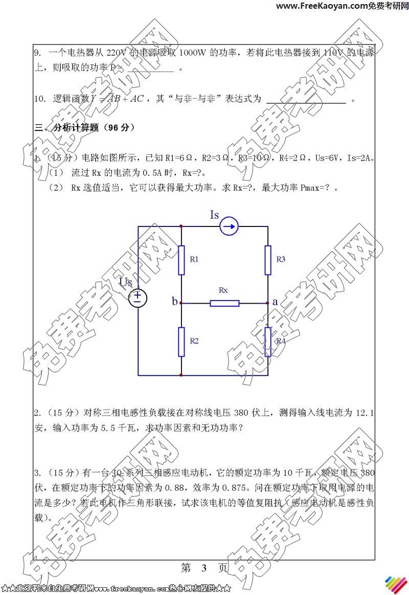 专业课考研经验 本站小编 FreeKaoyan 2018-01-22华南理工大学2006年考研真题-电力系统(含电力系统稳态和暂态分析)