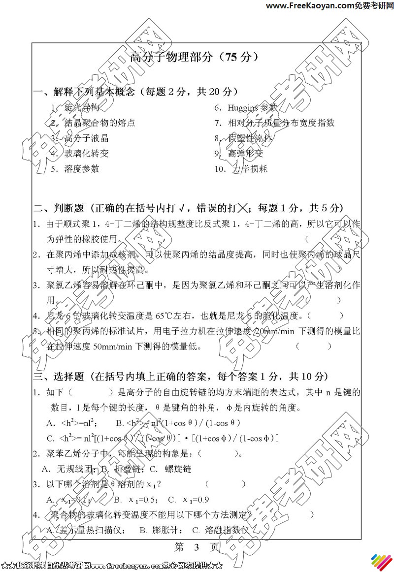 专业课考研经验 本站小编 FreeKaoyan 2018-01-22华南理工大学2006年考研真题-高分子物理