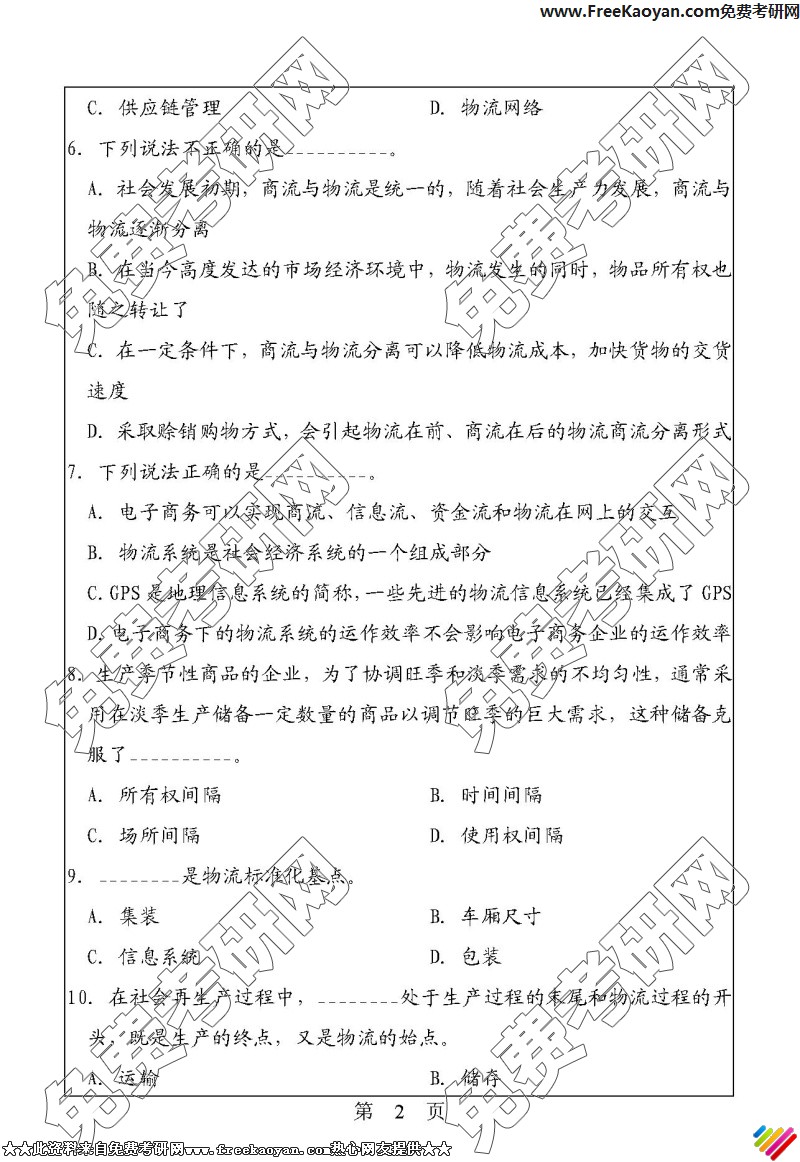 华南理工大学2006年考研真题-现代物流管理(2)