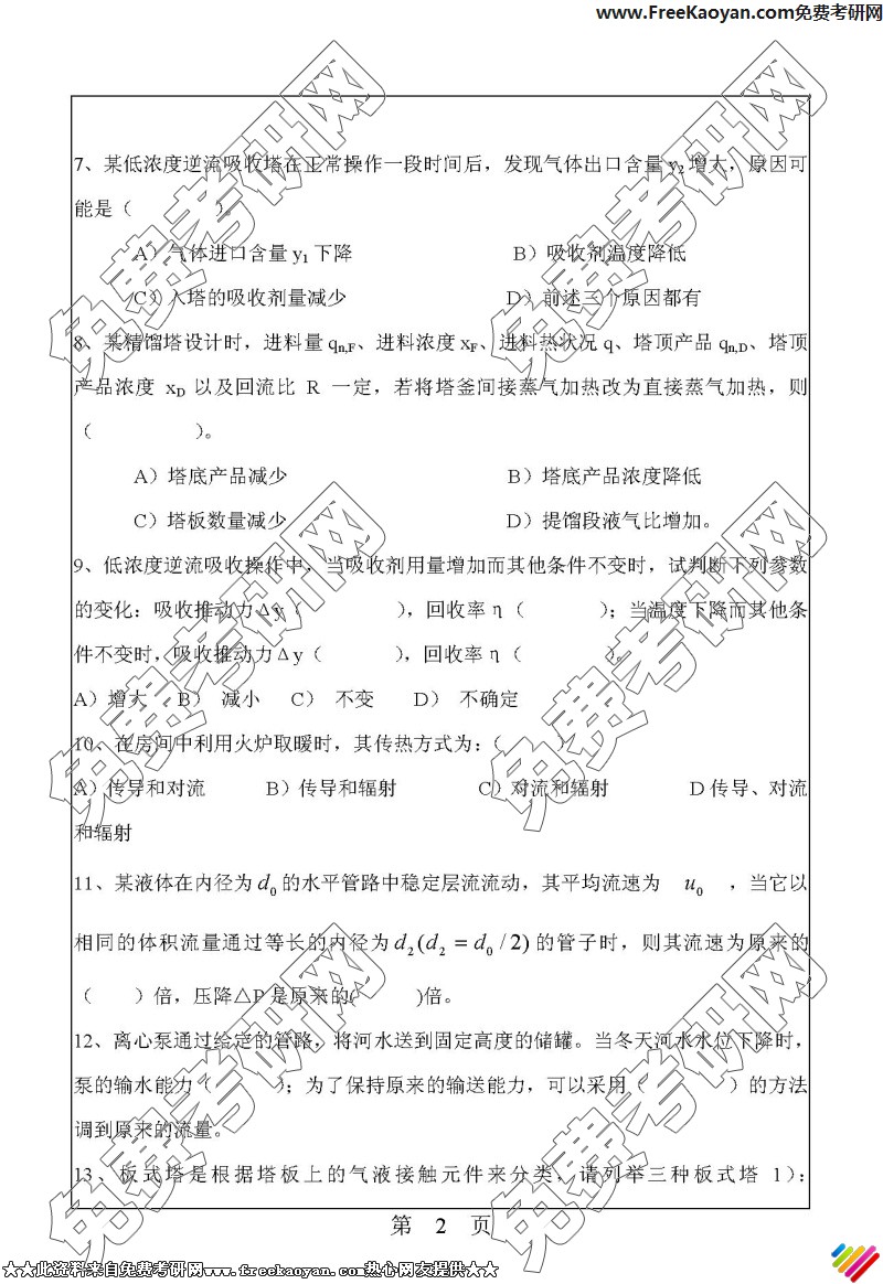 专业课考研经验 本站小编 FreeKaoyan 2018-01-22华南理工大学2006年考研真题-流体力学与传热
