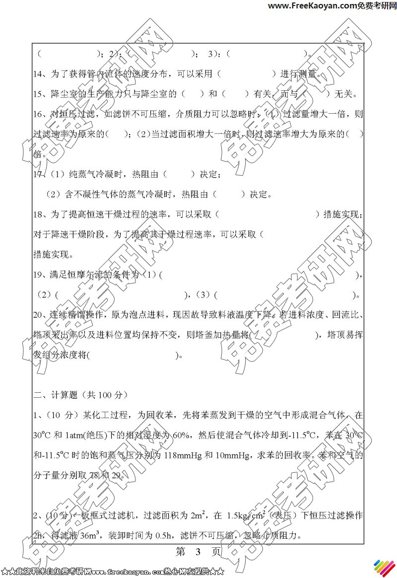 华南理工大学2006年考研真题-化工原理(3)