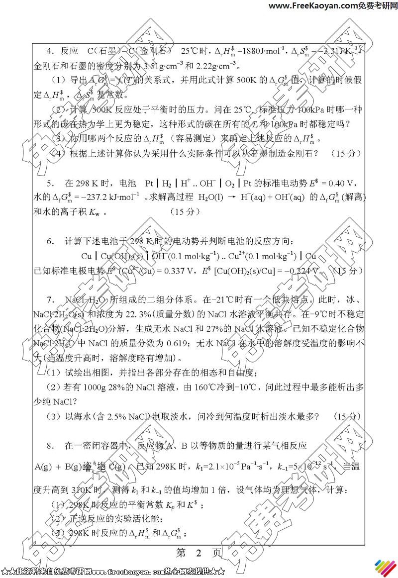 华南理工大学2006年考研真题-物理化学(二)(2)