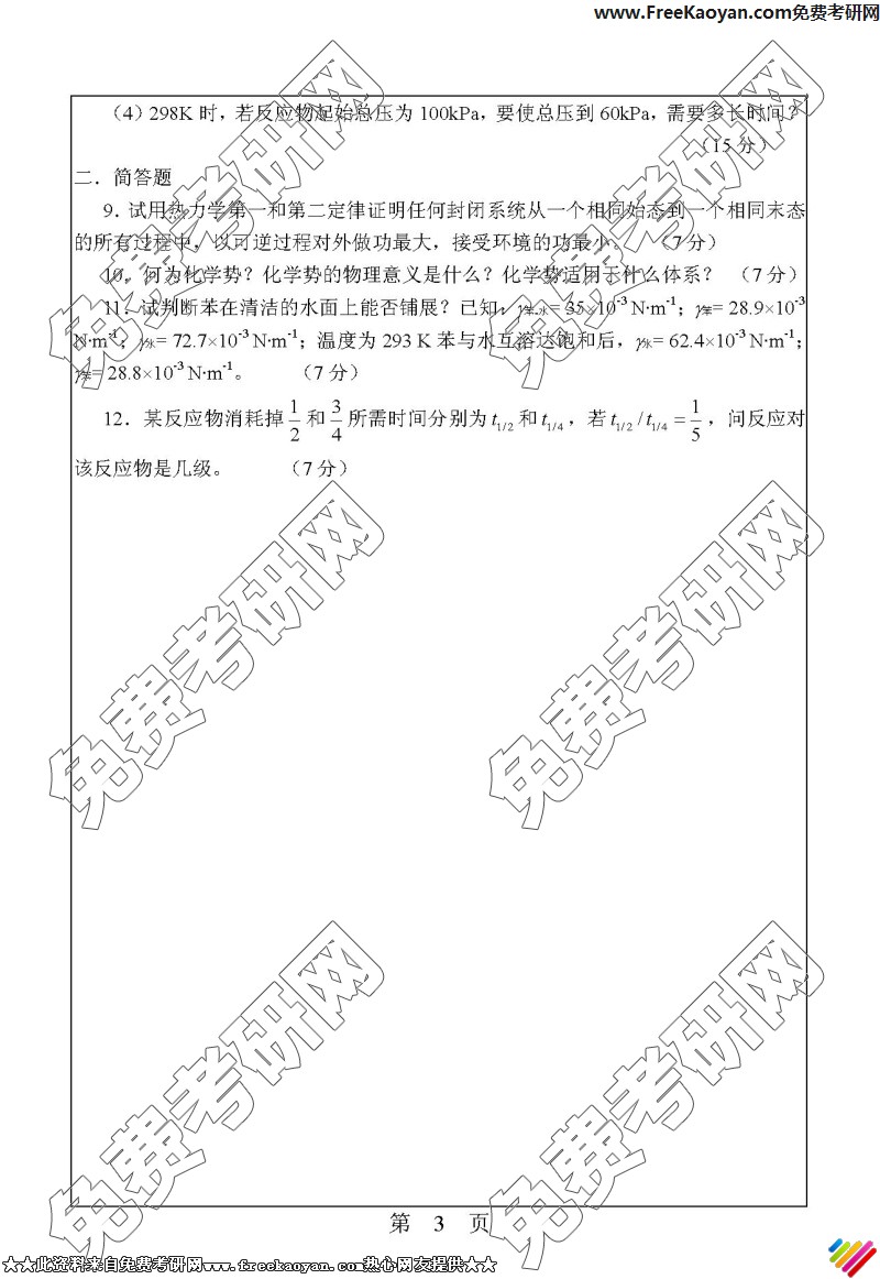 华南理工大学2006年考研真题-物理化学(二)(3)