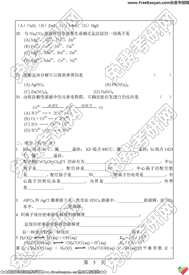 相关话题/华南理工大学 考研真题 无机化学