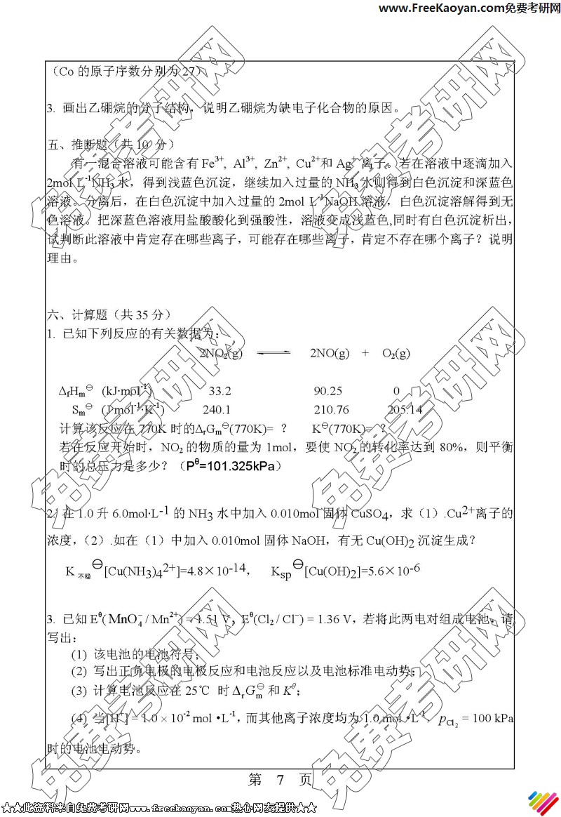 相关话题/华南理工大学 考研真题 无机化学