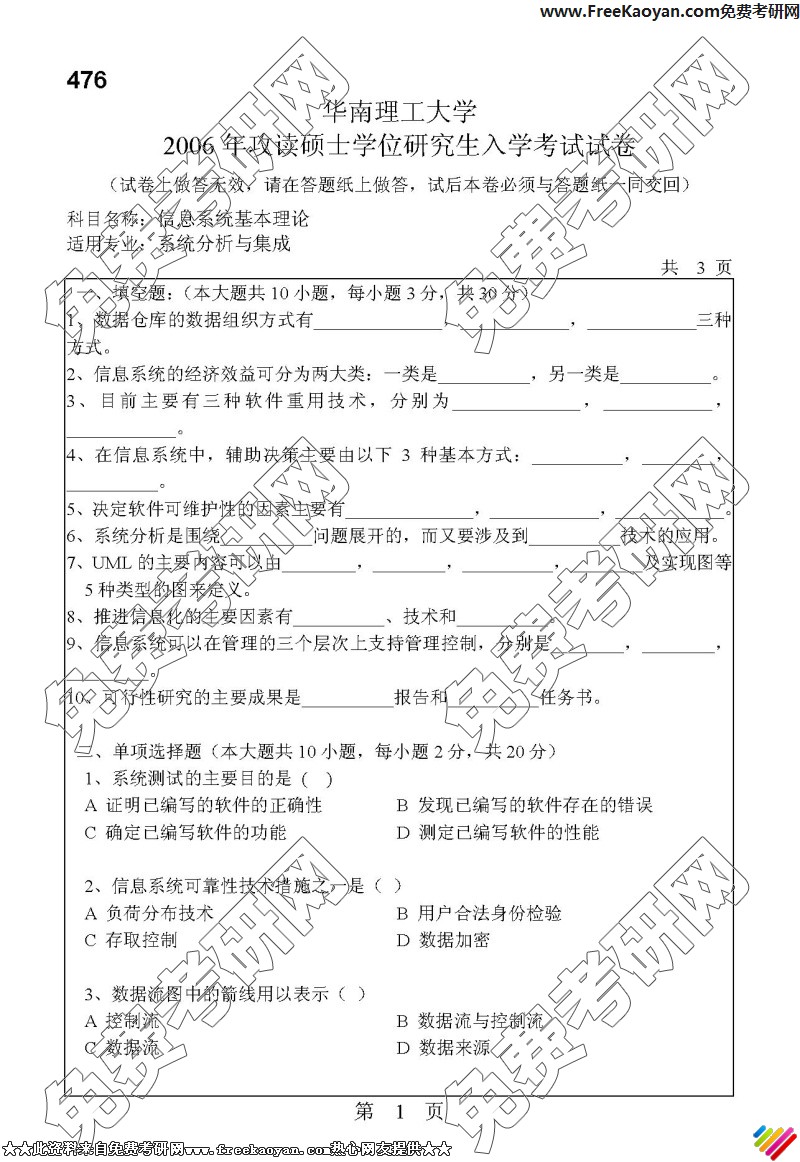专业课考研经验 本站小编 FreeKaoyan 2018-01-22华南理工大学2006年考研真题-管理学